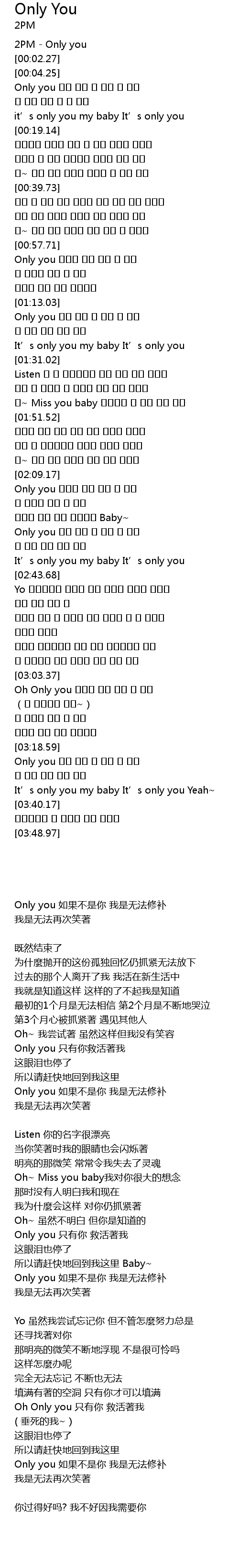 | [00:58.33] | Only you 너만이 나를 살릴 수 있어 |