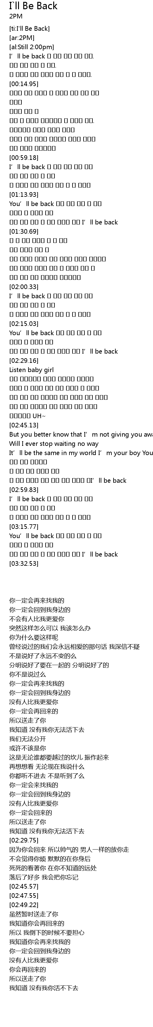 | [02:00.56] | I’ll be back 넌 다시 나를 찾을 거야 |