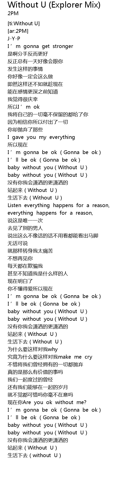 | [02:21.278] | shēng huó xià qù Without U |