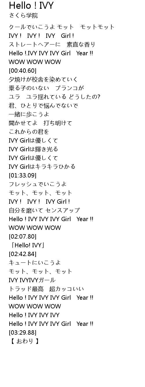 | [01:38.99] | IVY ! IVY ! IVY Girl ! |