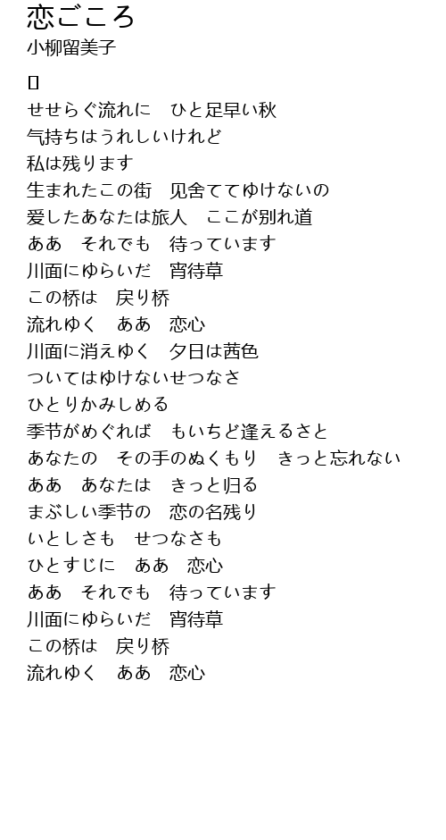 | 流れゆく ああ 恋心 |
