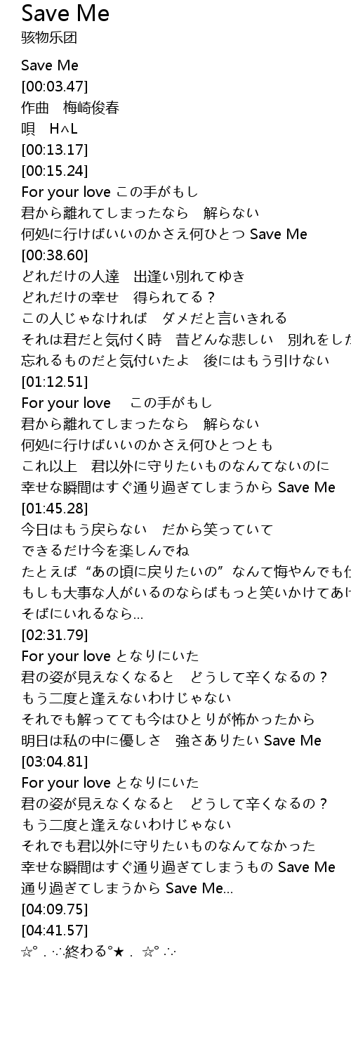 | [04:04.02] | 通り過ぎてしまうから Save Me... |