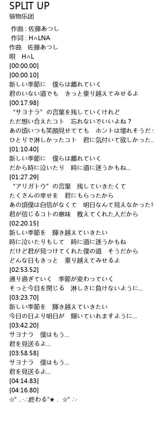 | [00:00.86] | 新しい季節に 僕らは離れていく |