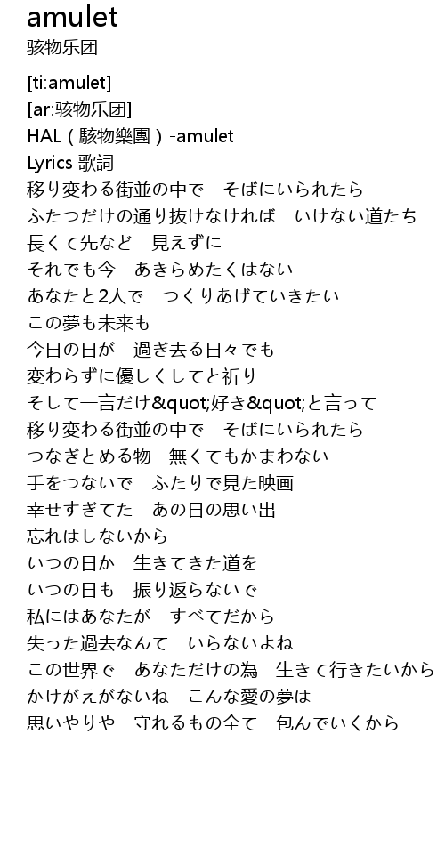 | [00:00.704] | HAL(駭物樂團)-amulet |