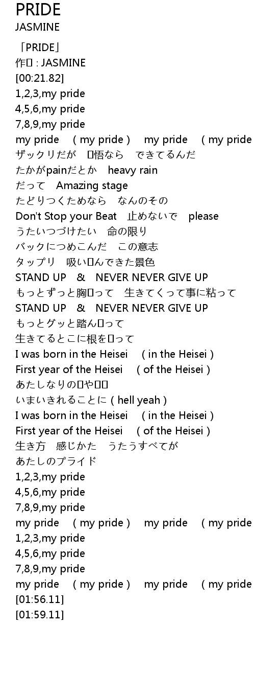 | [01:53.56] | my pride (my pride) my pride (my pride) |