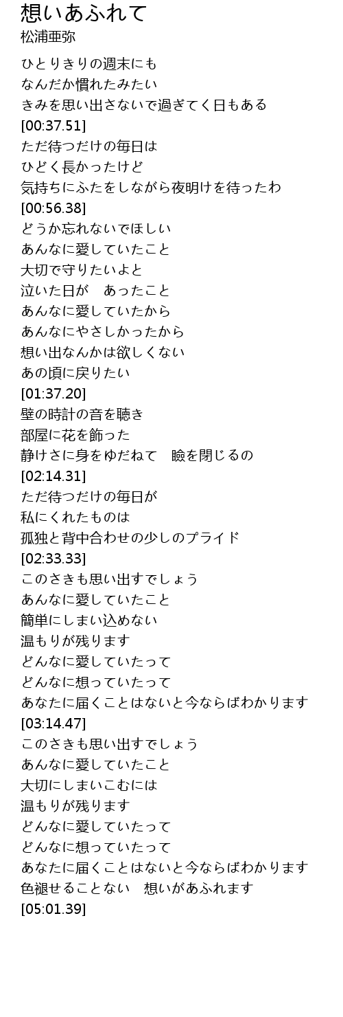 | [01:02.29] | あんなに愛していたこと |