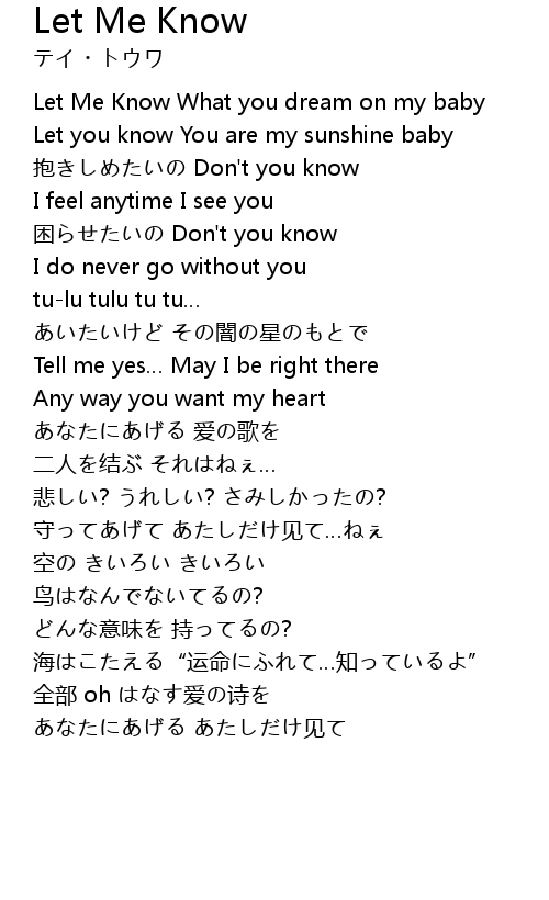 | Song | Let Me Know |