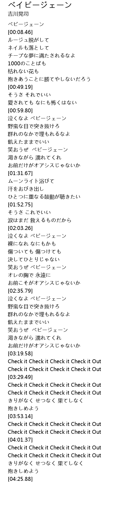 | [04:13.41] | Check it Check it Check it Check it Out |