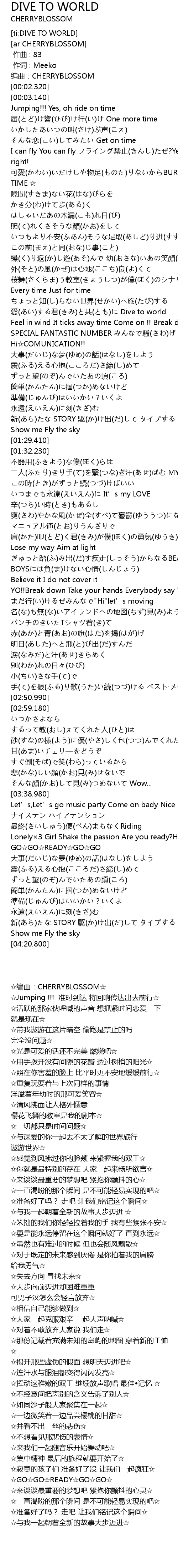 | [ti:DIVE TO WORLD] | |