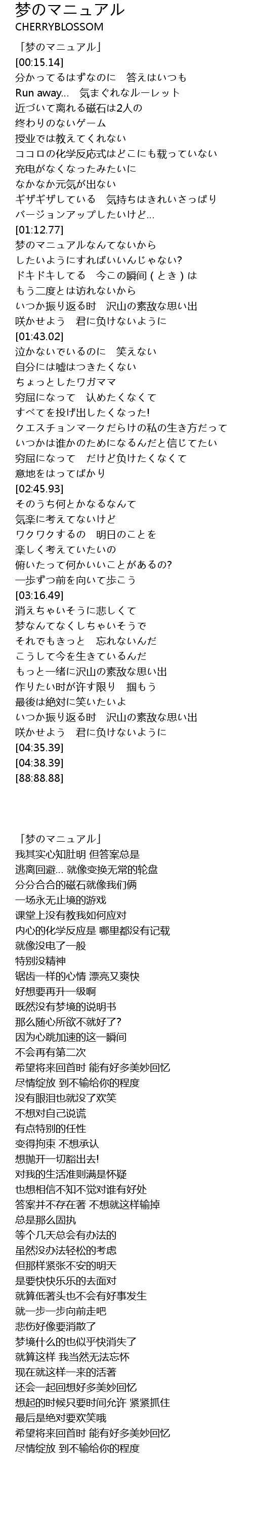 | [00:01.14] | 「梦のマニュアル」 |