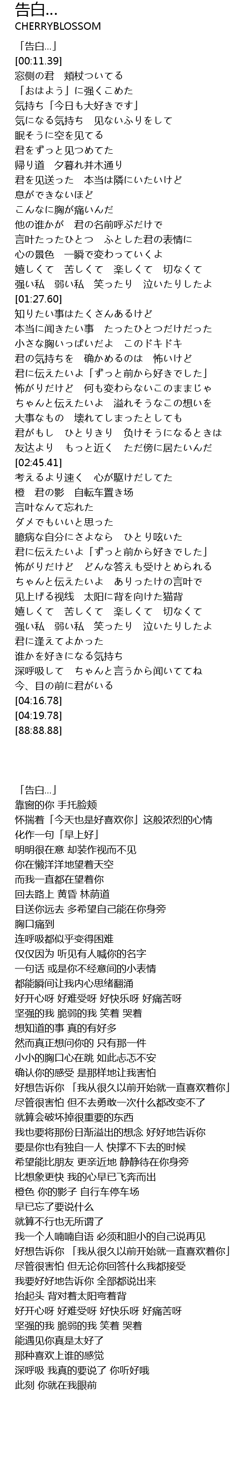 | [03:20.50] | 君に伝えたいよ「ずっと前から好きでした」 |