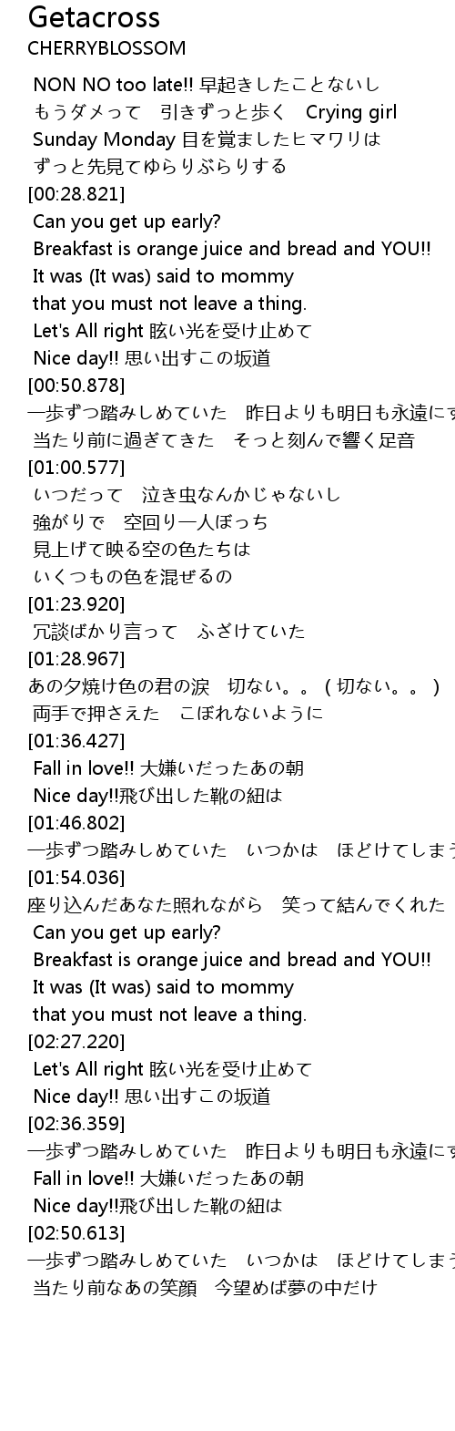 | [00:47.267] | Nice day!! 思い出すこの坂道 |