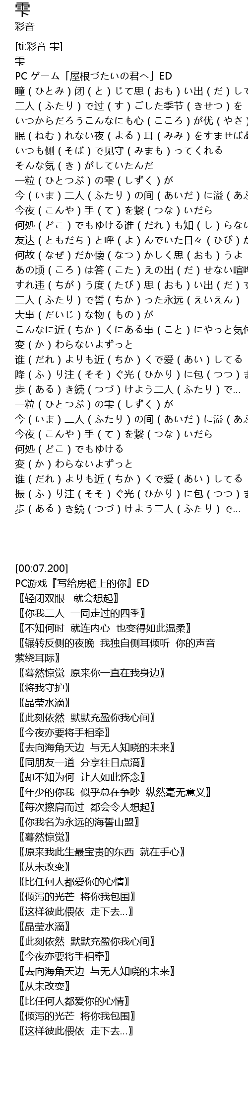 | [00:07.200] | 雫 |