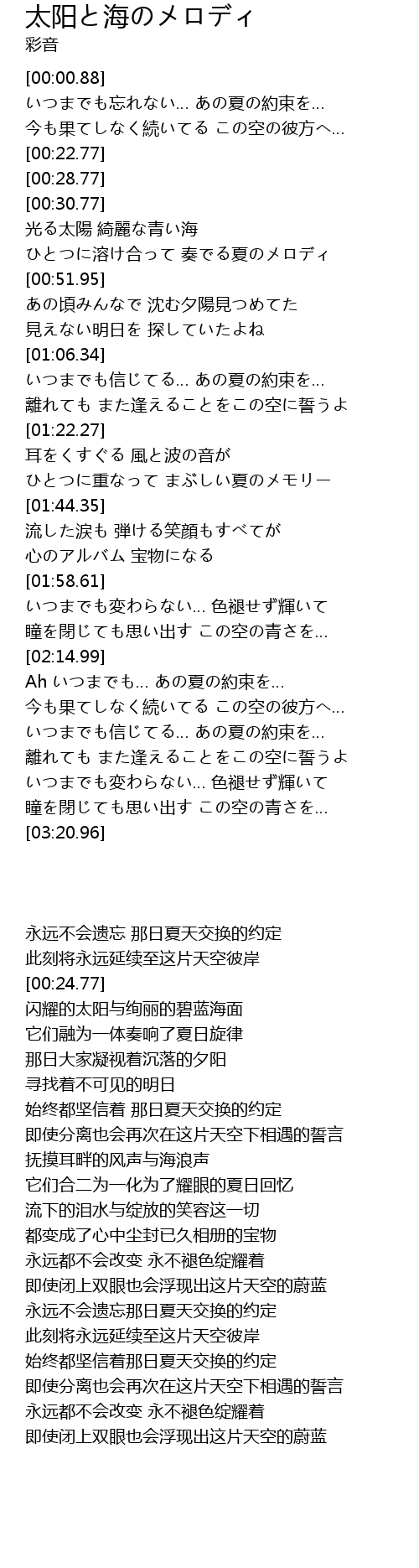 | [02:49.76] | いつまでも信じてる… あの夏の約束を… |