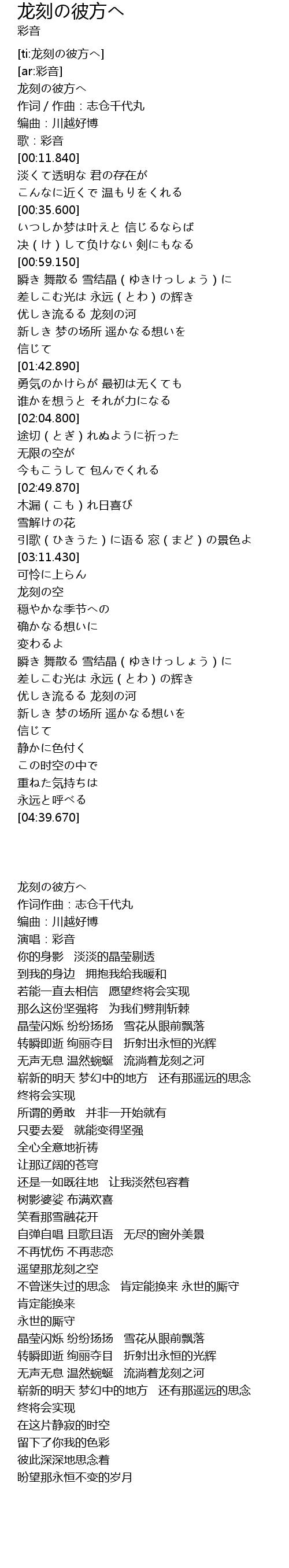 | [03:54.500] | 优しき流るる 龙刻の河 |
