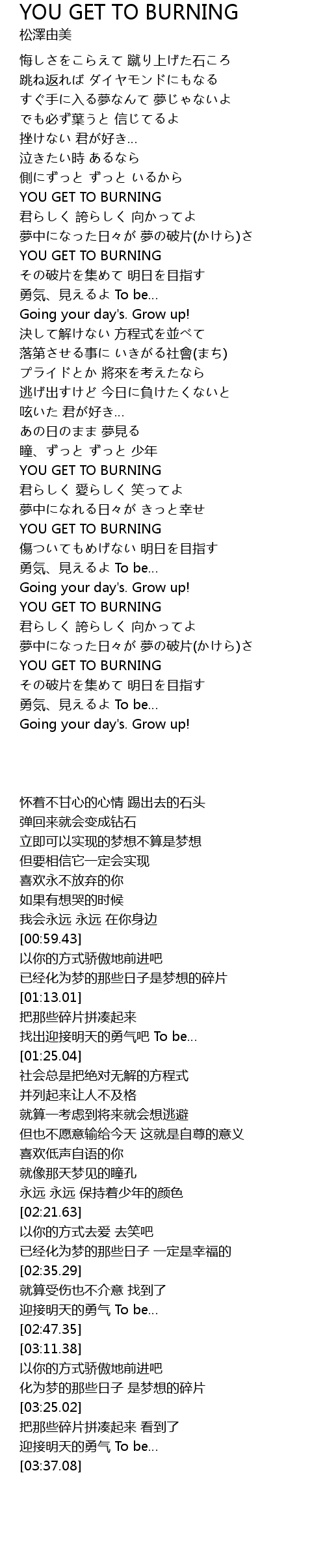 | [03:11.38] | YOU GET TO BURNING |