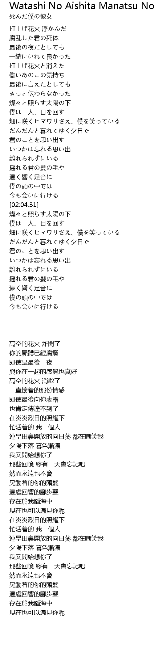 | [02:53.18] | 畑に咲くヒマワリさえ、僕を笑っている |
