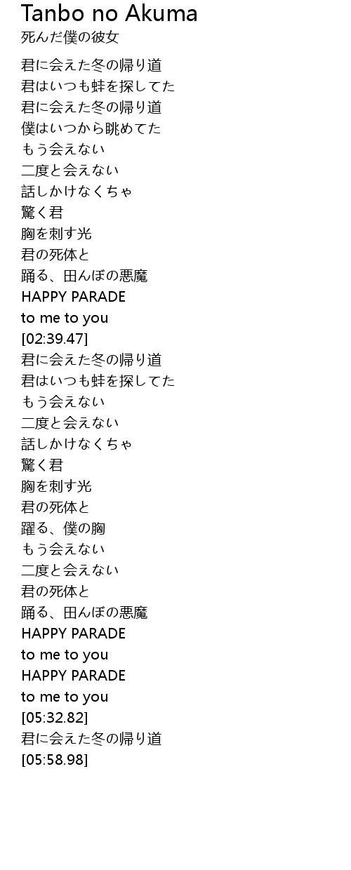 | [02:06.51] | 踊る、田んぼの悪魔 |