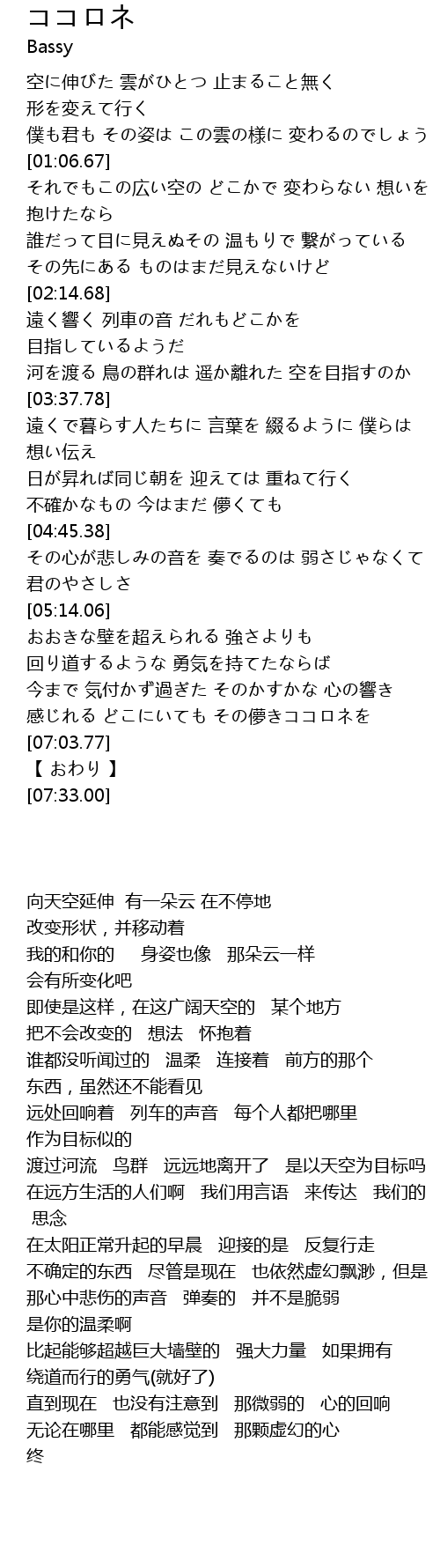 | [06:36.50] | 感じれる どこにいても その儚きココロネを |