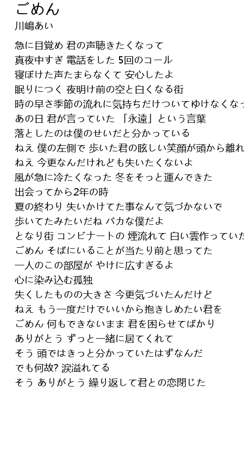 | ごめん 何もできないまま 君を困らせてばかり | |