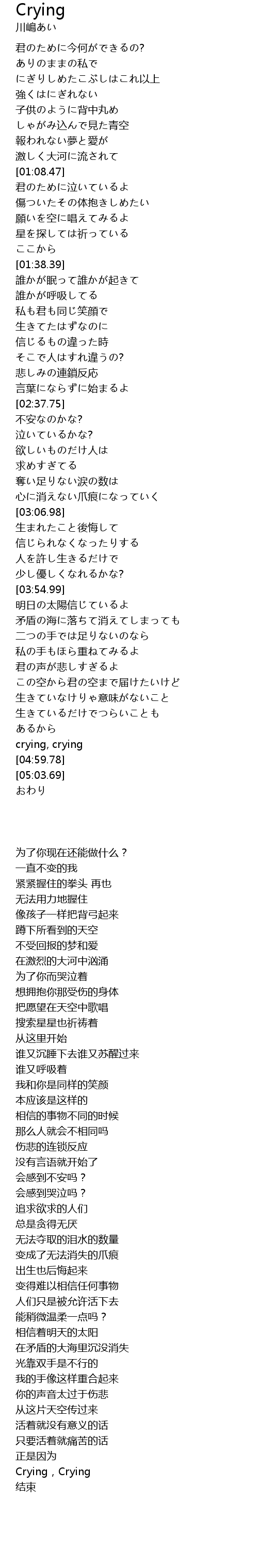 君のために泣いているよ |