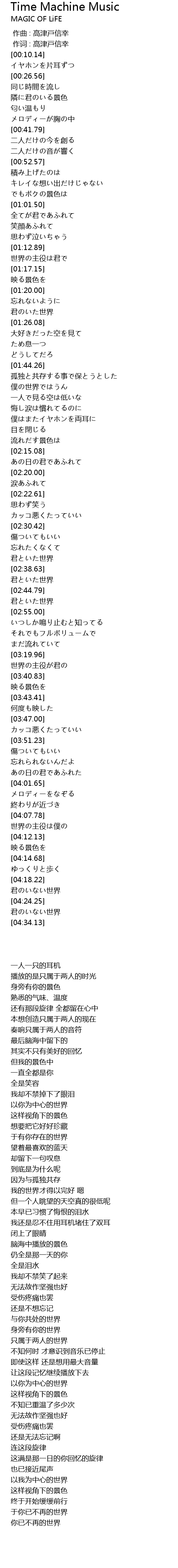| [04:20.61] | 君のいない世界 |