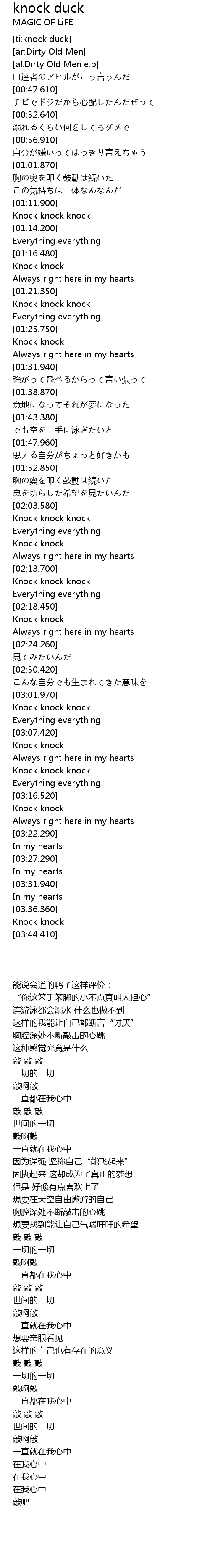 | [00:44.790] | 口達者のアヒルがこう言うんだ |