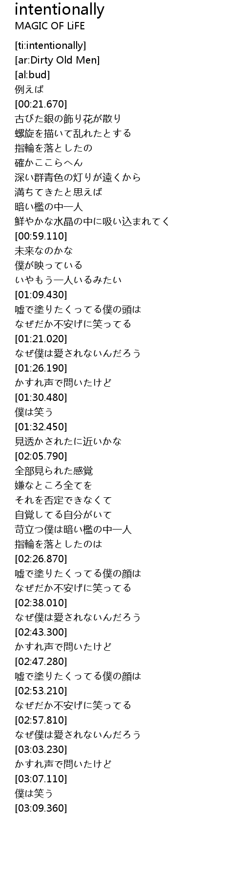 | [01:21.700] | なぜ僕は愛されないんだろう |