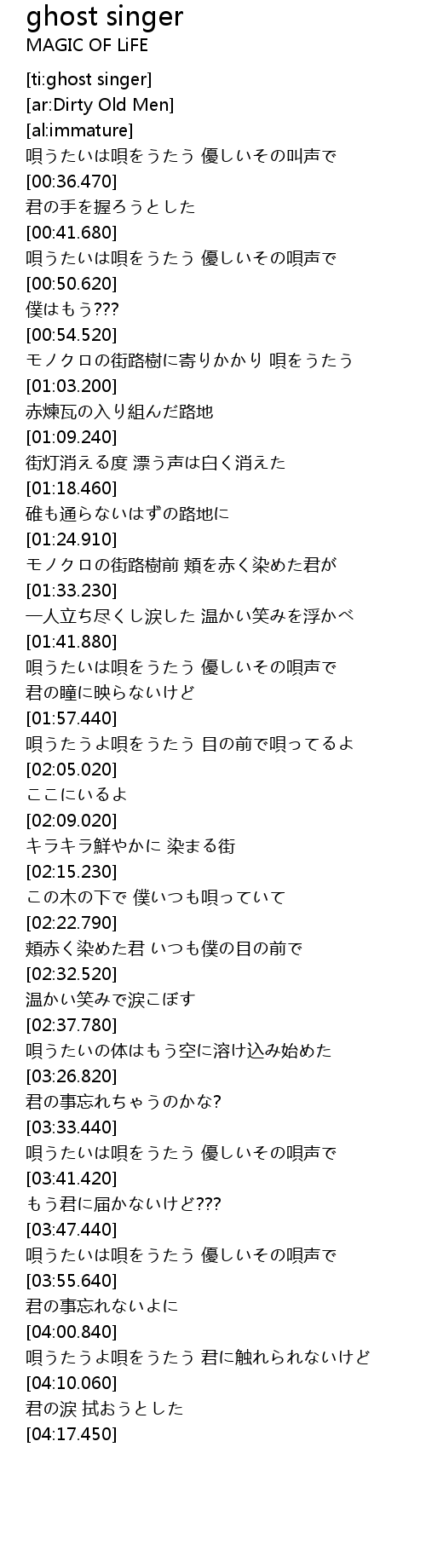 | [04:05.000] | 唄うたうよ唄をうたう 君に触れられないけど |