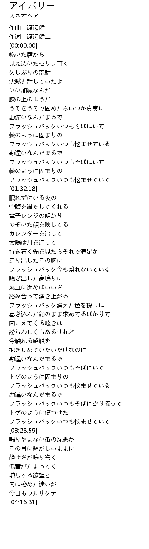 | [03:39.65] | 鳴りやまない街の沈黙が |