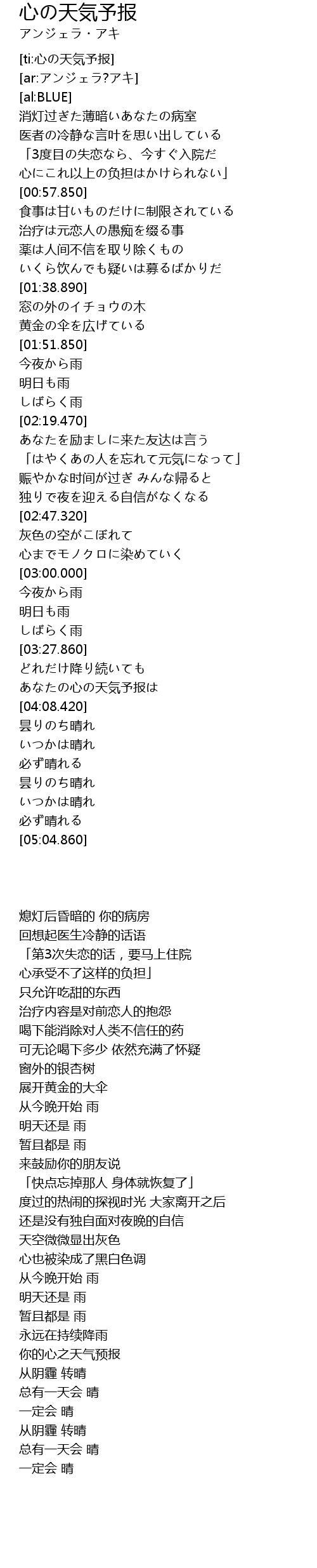 | [04:02.390] | xīn tiān qì yǔ bào |