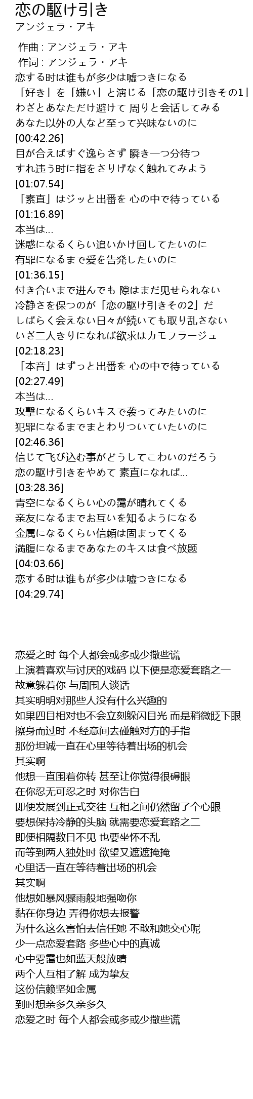 | [01:53.56] | 冷静さを保つのが「恋の駆け引きその2」だ |