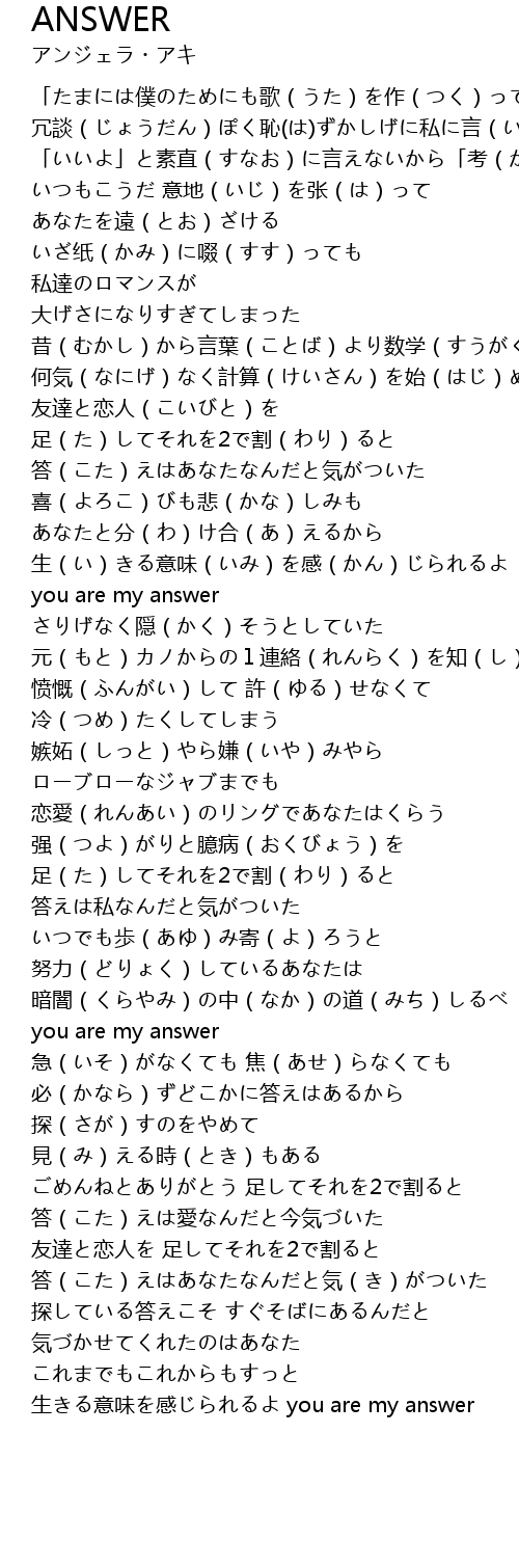 | [01:16.42] | 友達と恋人(こいびと)を 足(た)してそれを2で割(わり)ると |