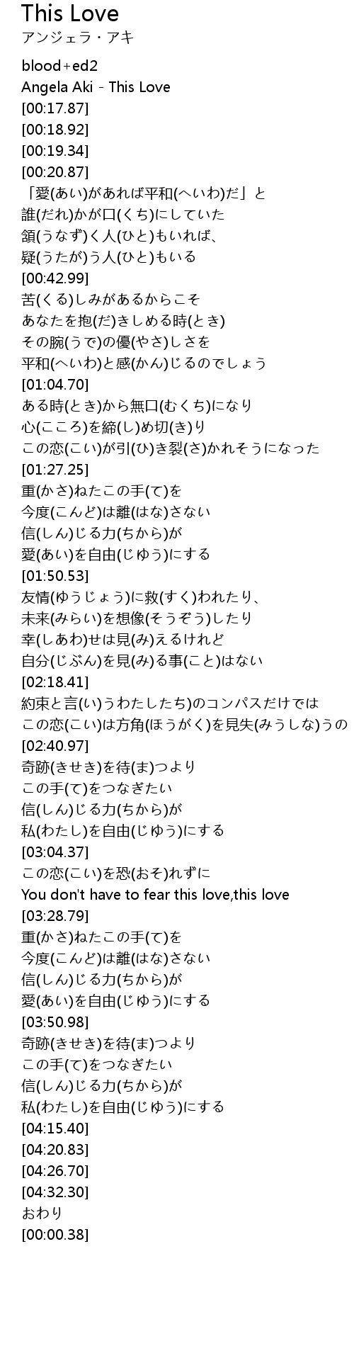 | [00:05.00] | Angela Aki - This Love |