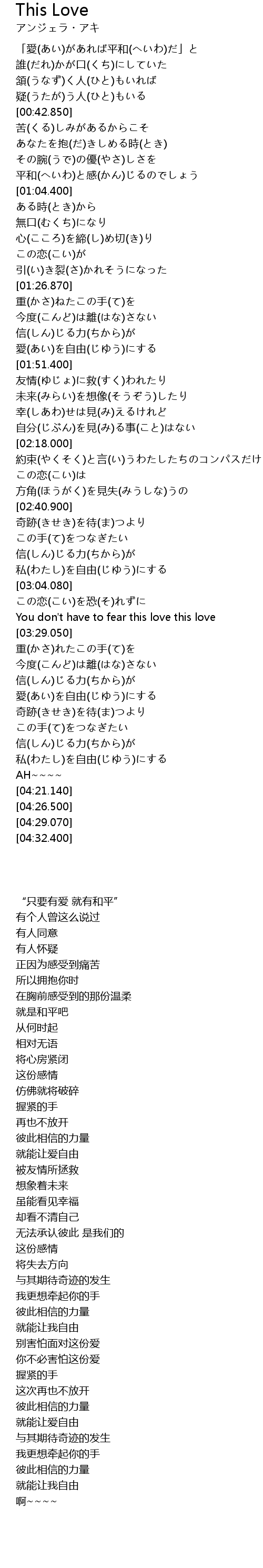 | [00:23.090] | 「愛(あい)があれば平和(へいわ)だ」と |