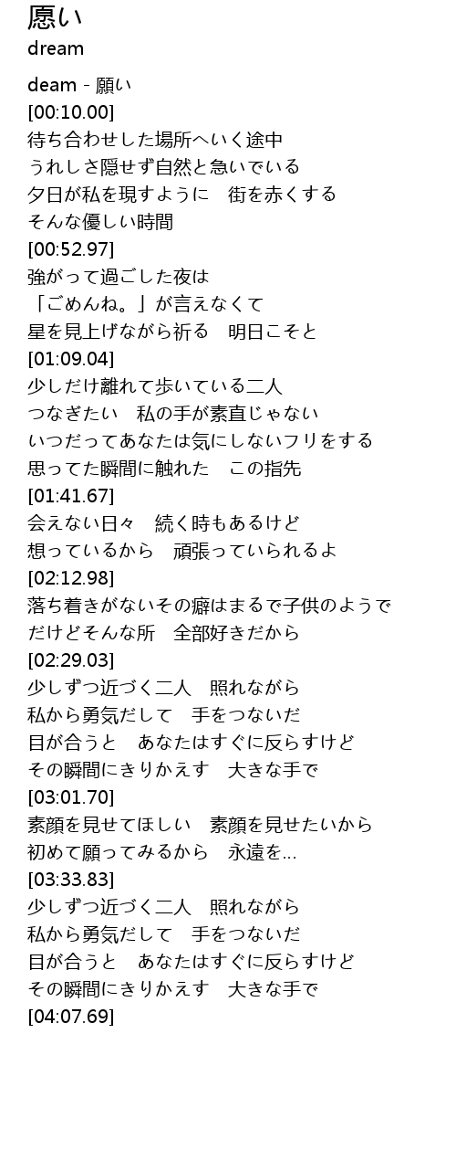 | [03:43.30] | 私から勇気だして 手をつないだ |