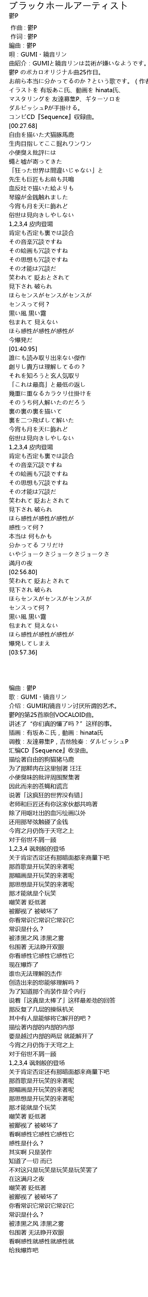 | [00:12.93] | 曲紹介:GUMIと鏡音リンは芸術が嫌いなようです。 |
