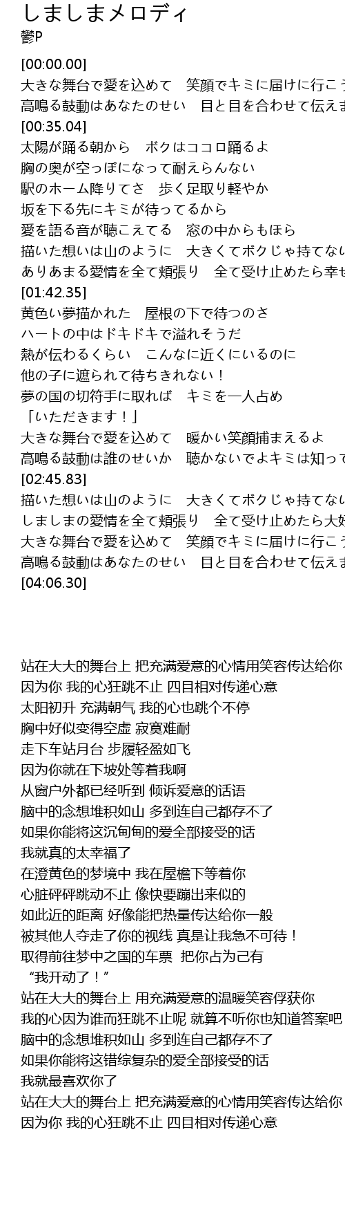 | [03:28.76] | しましまの愛情を全て頬張り 全て受け止めたら大好きよ |