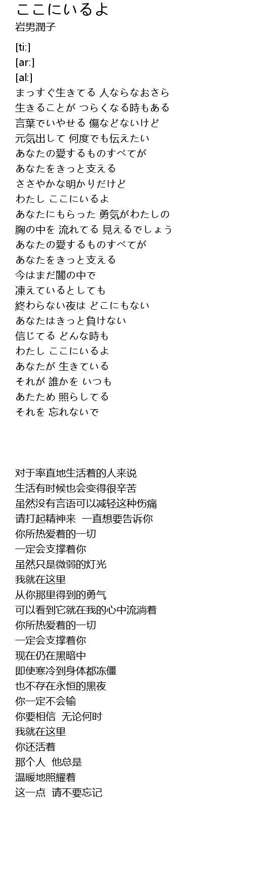 | [01:22.36] | わたし ここにいるよ |