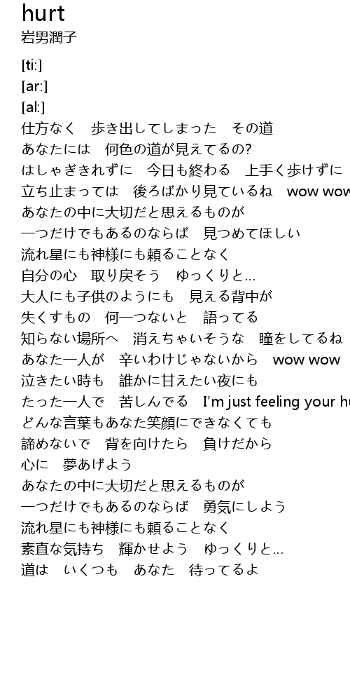 | [02:11.59] | あなた一人が 辛いわけじゃないから wow wow |