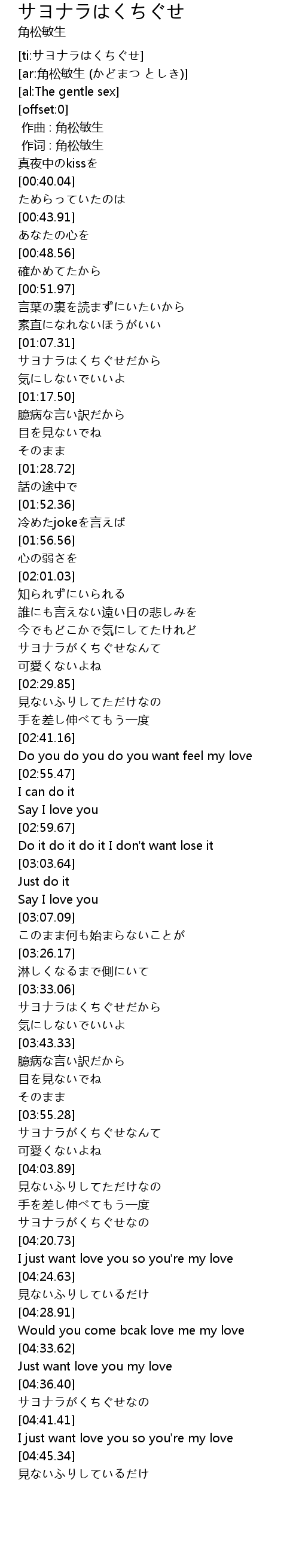 | [02:22.33] | サヨナラがくちぐせなんて |
