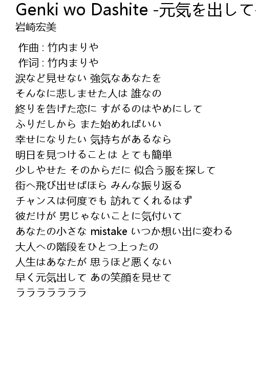 | Song | Genki wo Dashite -元気を出して- |