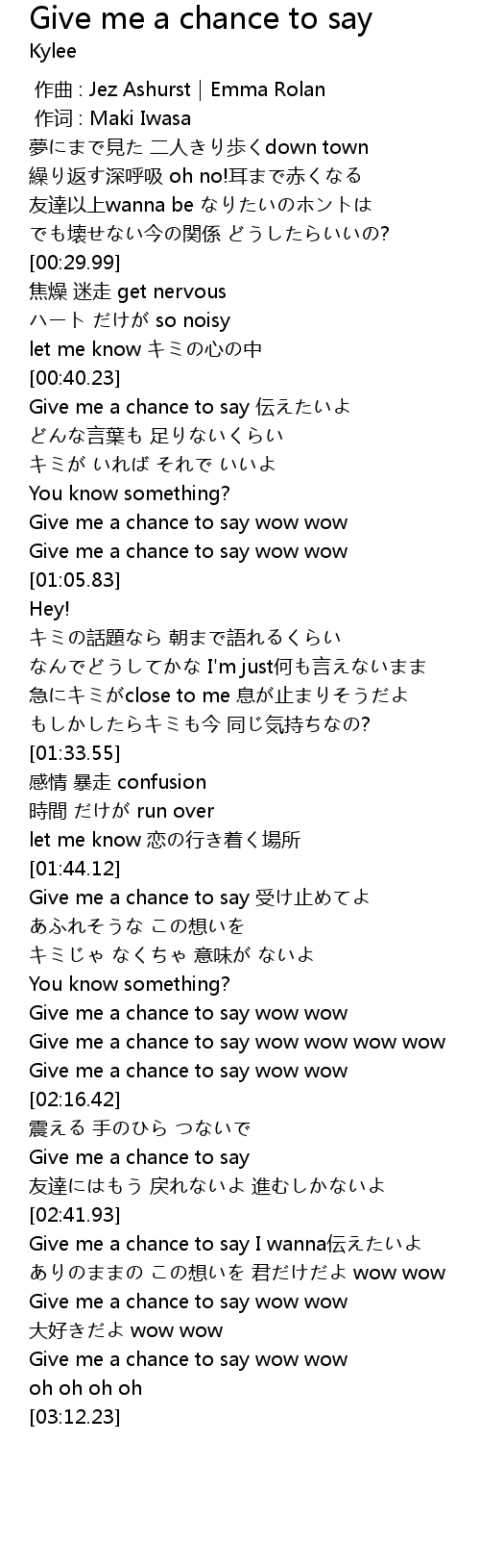 | [02:29.15] | Give me a chance to say |
