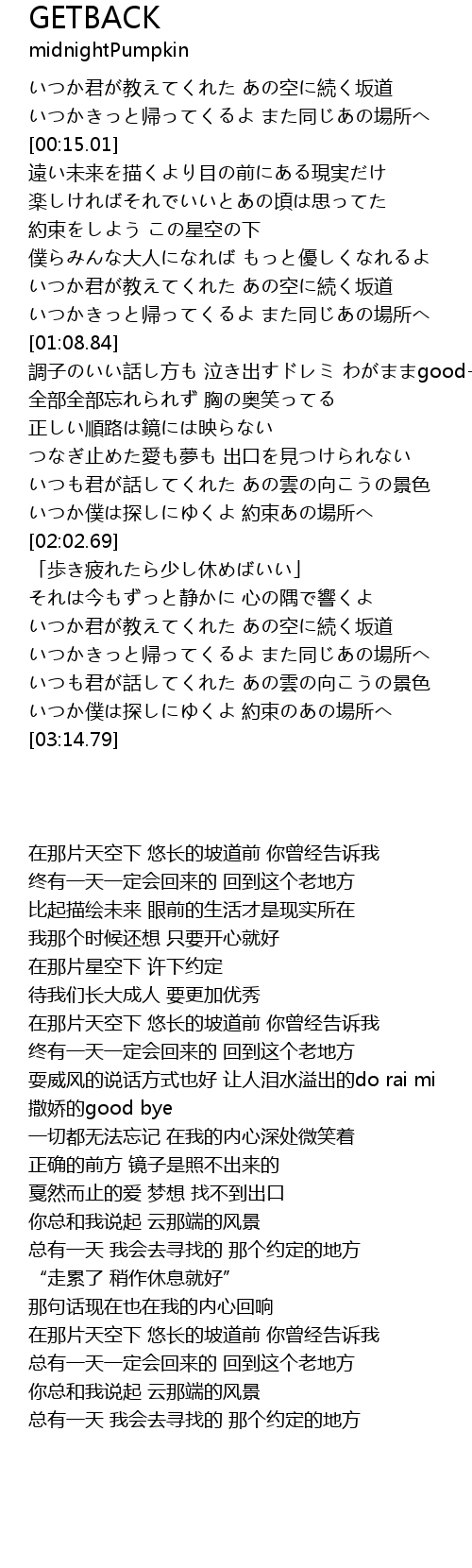 | [00:07.72] | いつかきっと帰ってくるよ また同じあの場所へ |