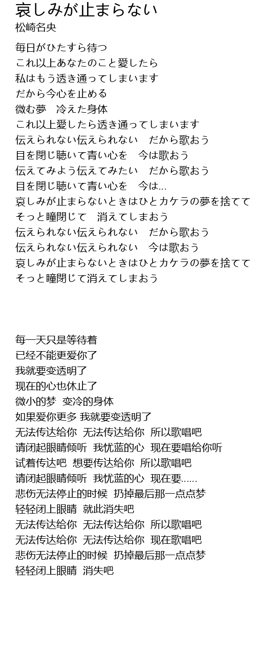 | Song | 哀しみが止まらない |