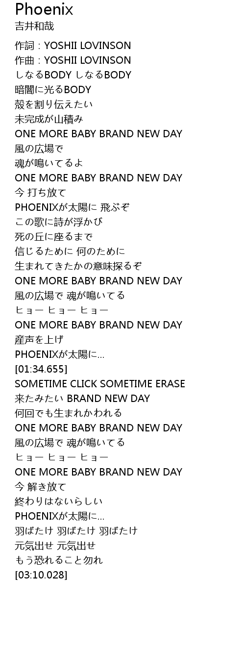 | [02:16.294] | ONE MORE BABY BRAND NEW DAY |