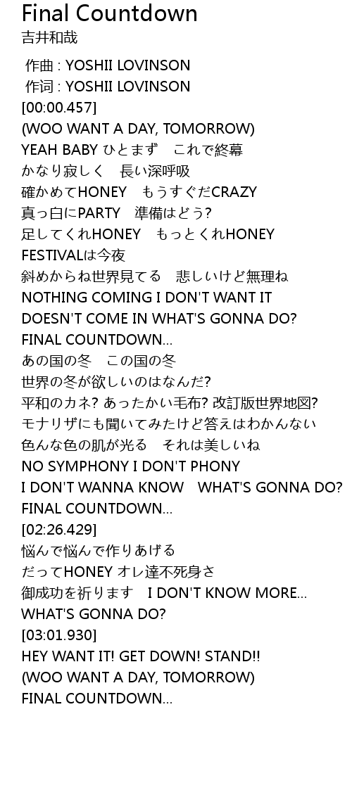 | [00:00.152] | 作词 : YOSHII LOVINSON |