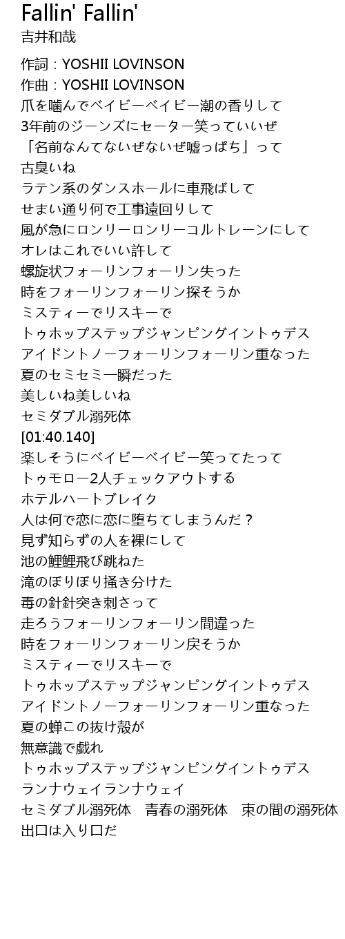| [00:00.091] | 作詞:YOSHII LOVINSON |