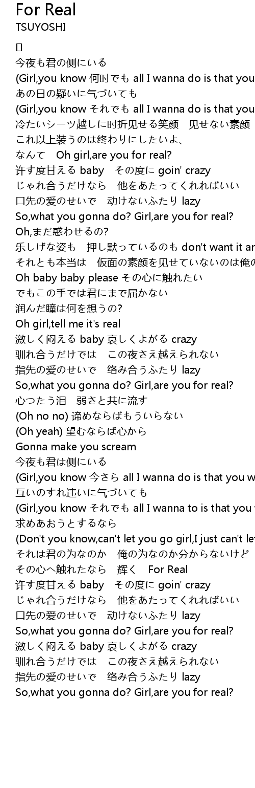 | (Girl,you know それでも all I wanna to is that you wanna do) | |