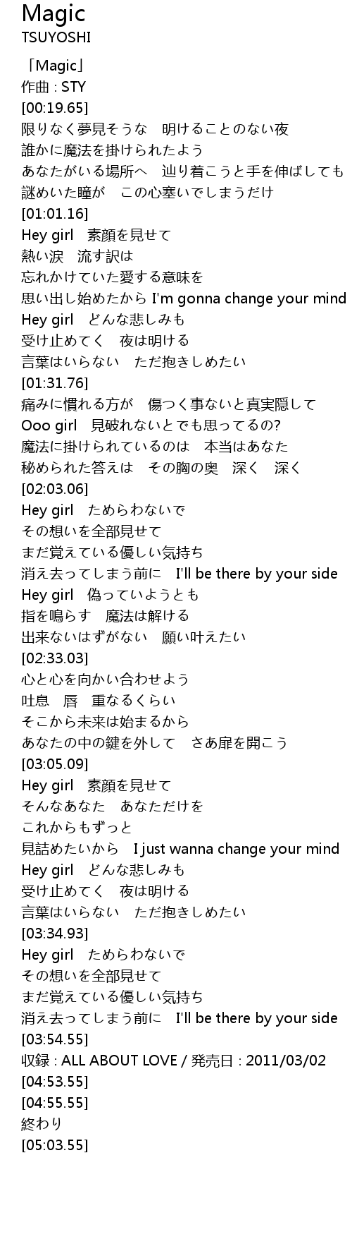 | [04:49.55] | shou lu ALL ABOUT LOVE fa mai ri 2011 03 02 |